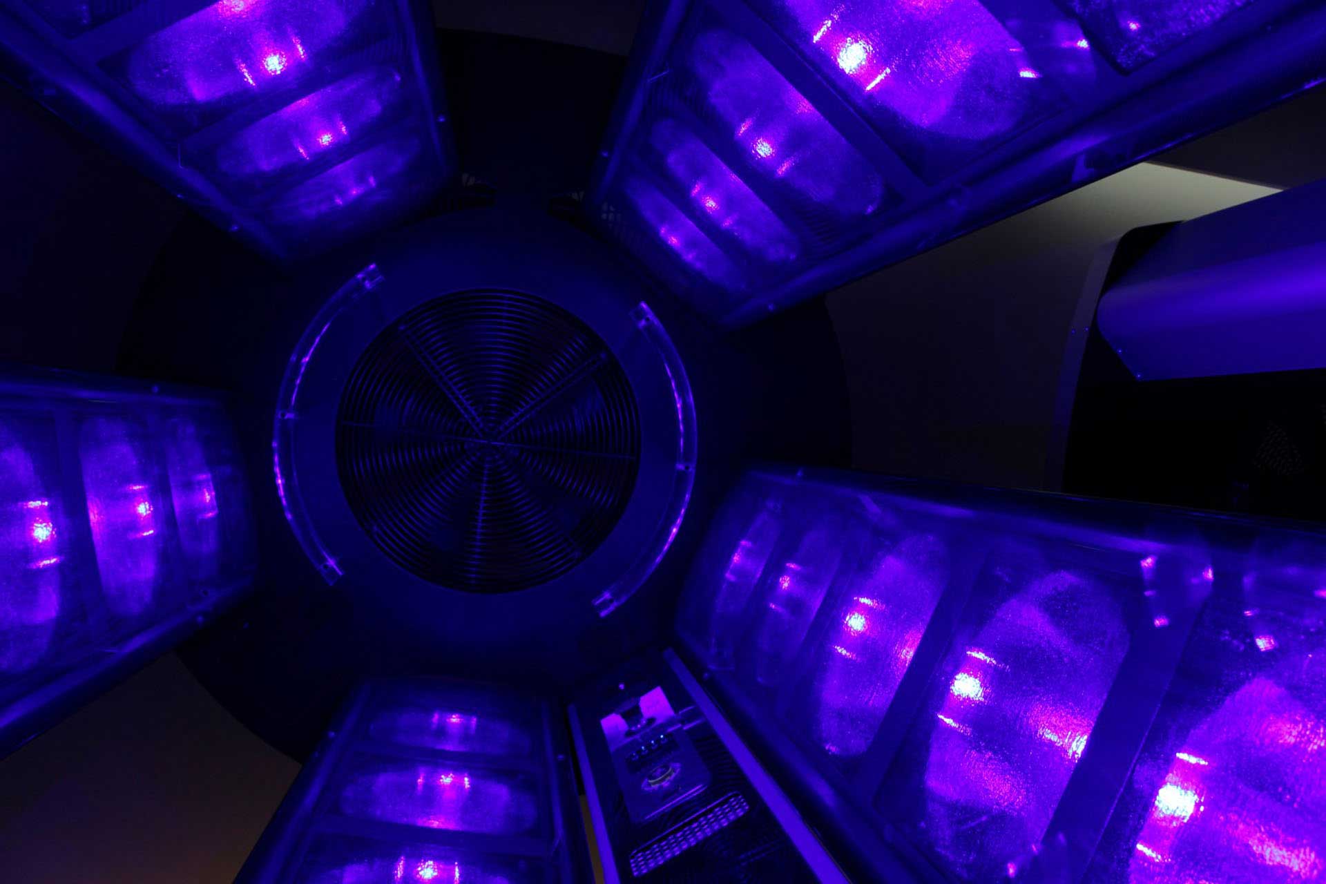 Con lampade ad alta pressione che irradiano il corpo intero e non solo il volto,